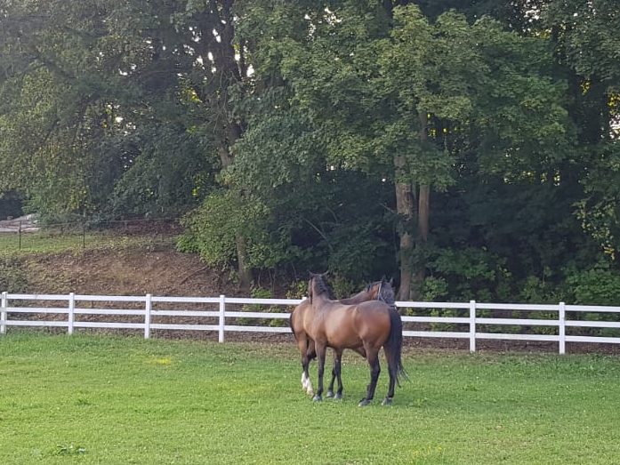 Großzügige Paddocks und gepflegte Koppeln ermöglichen tägliche Bewegung und soziale Kontakte. Je nach Wetter, Trainingsplan und Temperament wird jedes Pferd individuell eingeteilt.